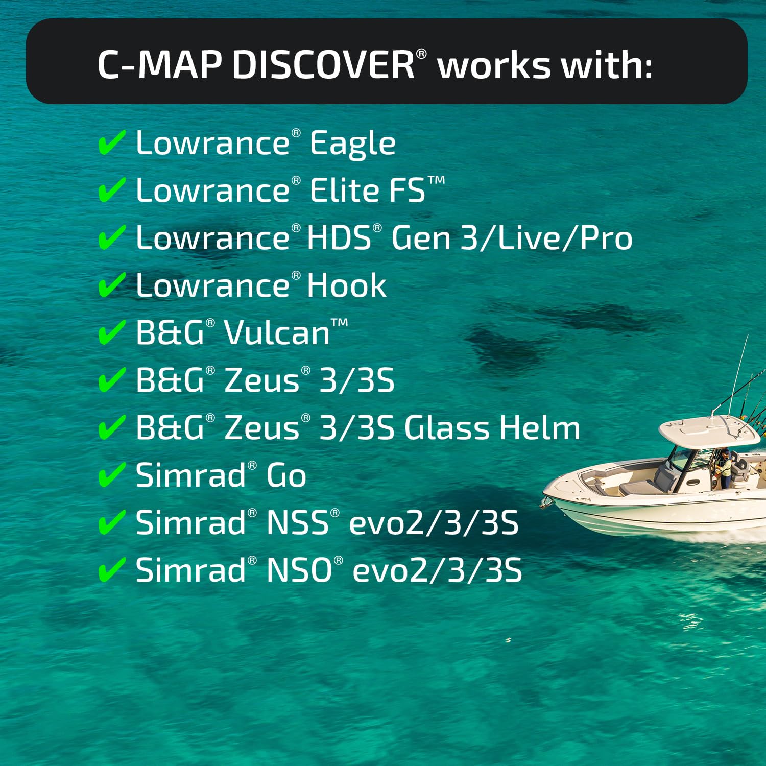 - COMPATIBILITY: This DISCOVER product is only compatible with the following Lowrance, Simrad, and B&G models: HDS PRO, HDS LIVE, HDS CARBON, Elite-FS, Elite-Ti2, Elite-Ti, Eagle, NSSevo3s, NSSevo3, NSSevo2, NSOevo3s, NSOevo3, NSOevo2, Go